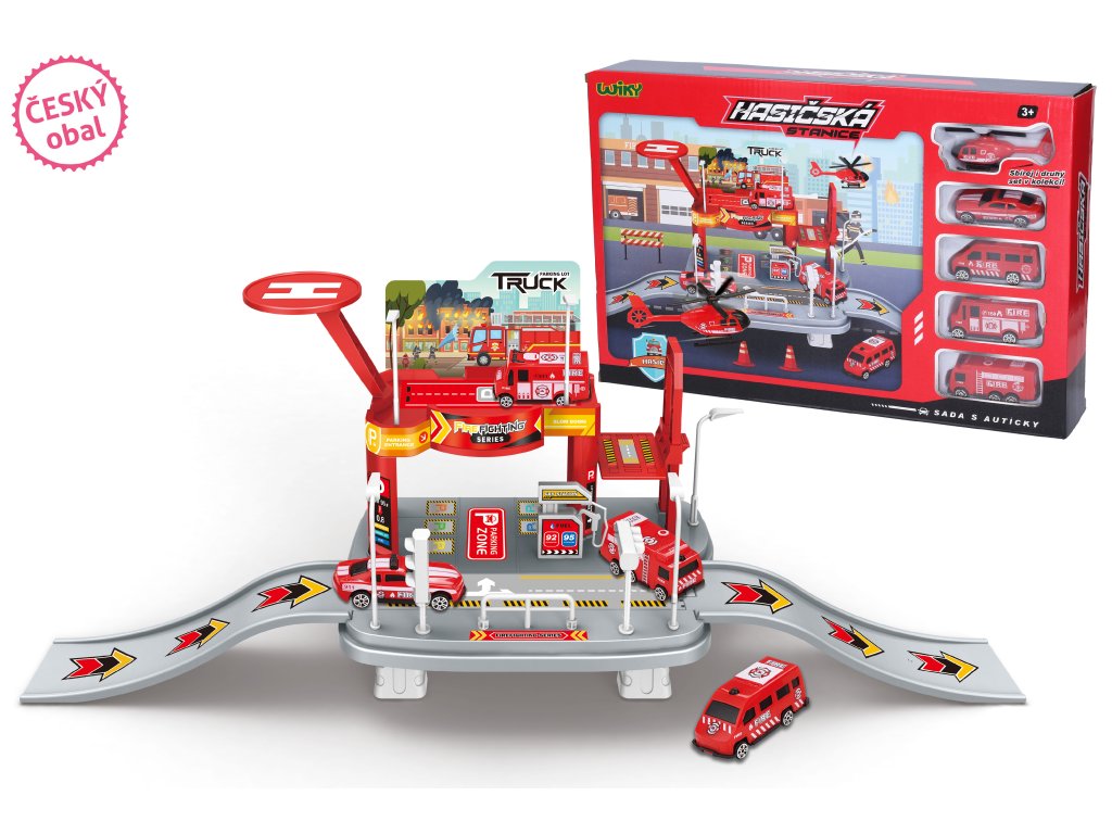 Hasičská stanice s auty 65x19x24,5 cm - český obal