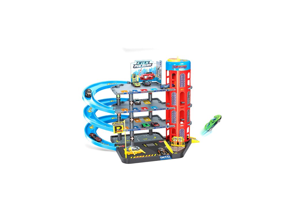 Parkovací stanice se 6 kovovými auty 55x40x44 cm