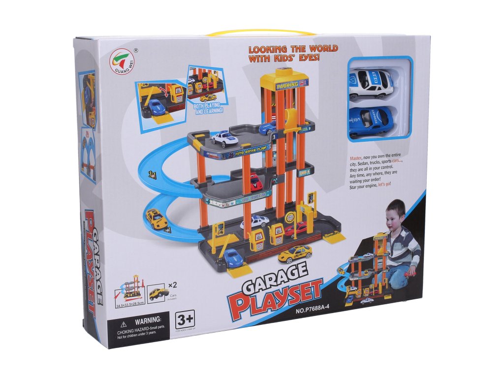 Plastová garáž s výtahem, která zabaví na dlouhé hodiny! Nemáte kam zaparkovat svá autíčka? Pořiďte si tuto garáž a už nebudete mít problém se zaparkováním. Balení obsahuje skládací garáž a 2 plastová auta. Volná kola. Velikost auta 7 cm. Manuální výtah, tankovací pumpa. Rozměry garáže ve složeném stavu 34,5x33,5x28,5 cm. Doporučený věk: od 3 letDoplňkové parametry