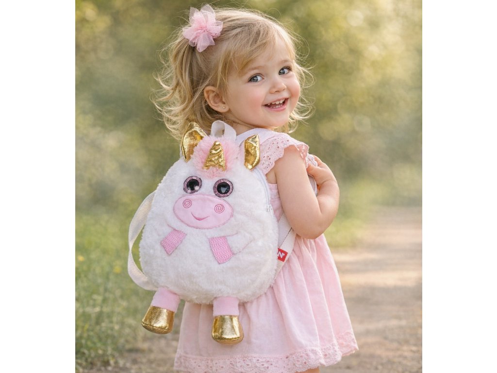 Rozkošný plyšový batoh s motivem jednorožce je ideálním doplňkem pro nejmenší holčičky. Měkoučký batůžek slouží nejen jako praktický pomocník pro uložení drobných nezbytností, ale zároveň jako plyšový kamarád, kterého si děti okamžitě zamilují.
