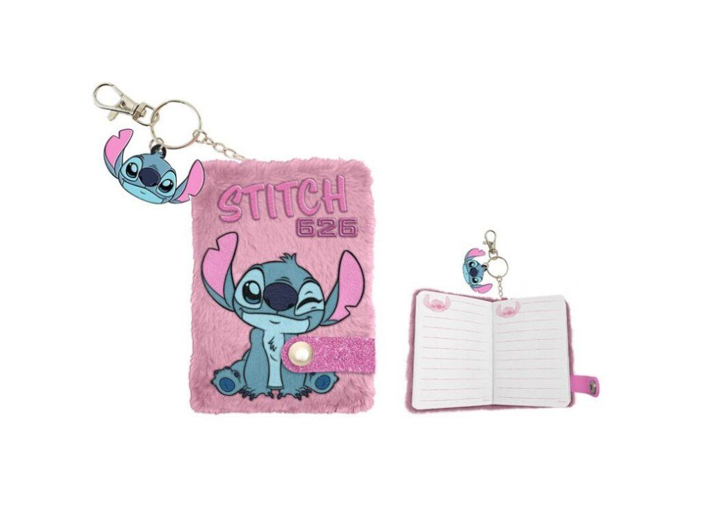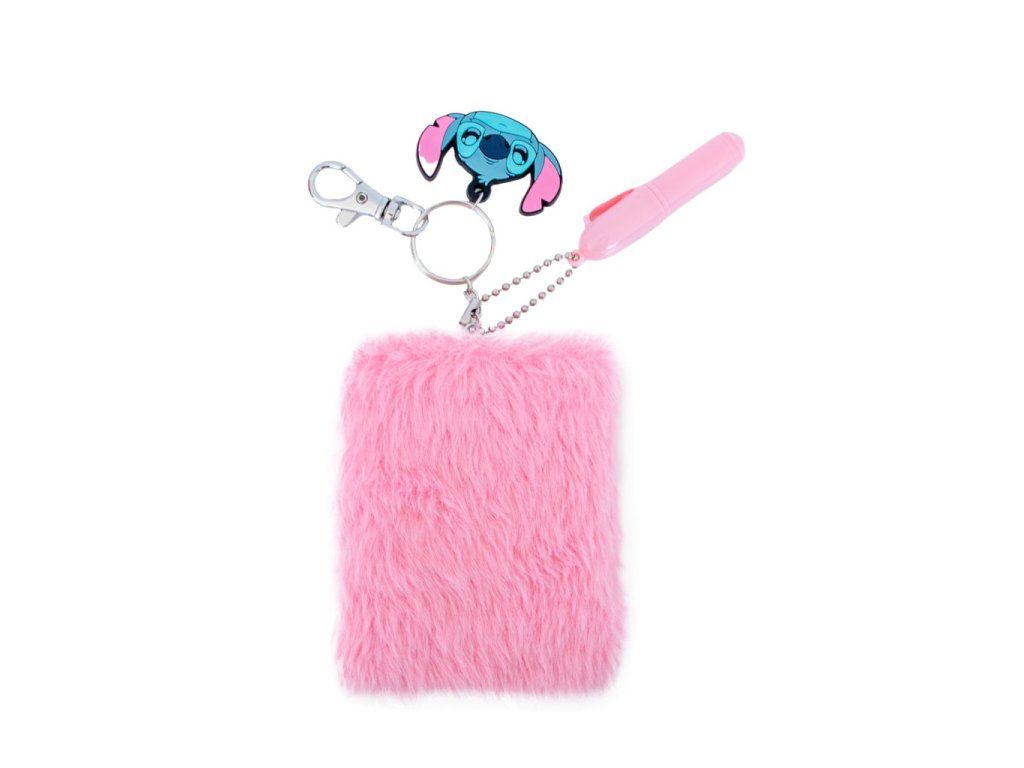 Plyšový minizápisník LILO A STITCH s perem a klíčenkou růžový