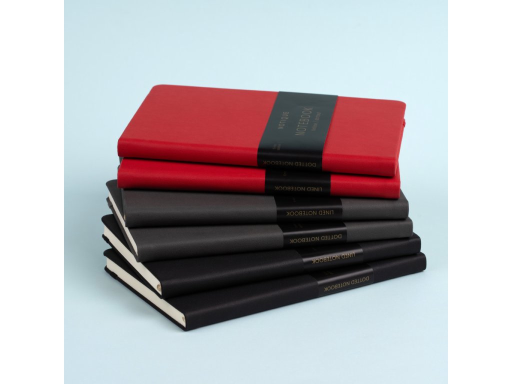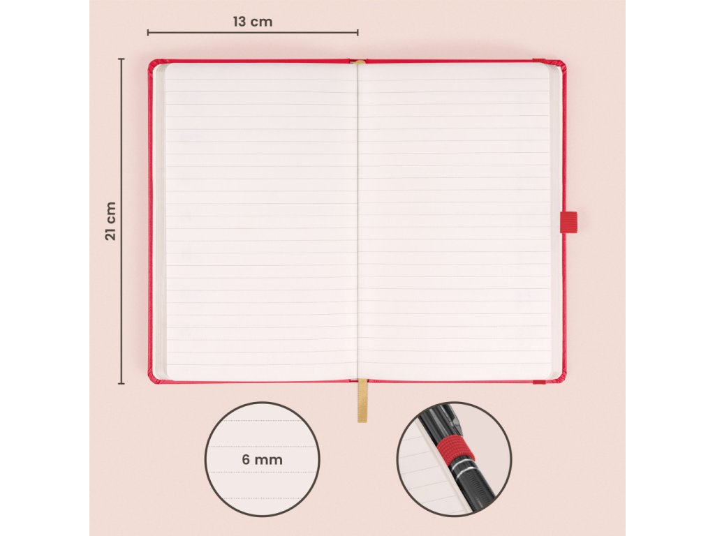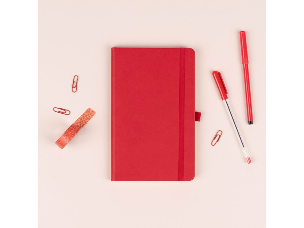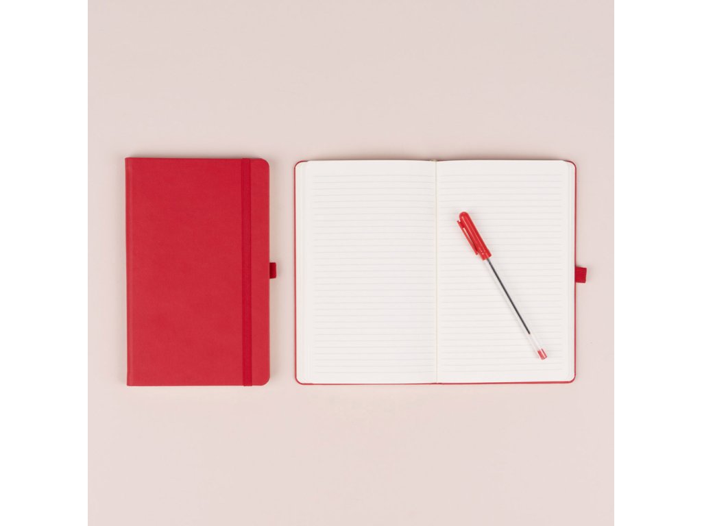 Praktický a lehký linkovaný notes v klasické červené barvě má povrch s hrubší strukturou, na který si můžete nechat vyrazit logo společnosti. Notes má pevnou knižní vazbu a zakulacené rohy, poutko na tužku, elastickou gumičku a textilní záložku. Linky mají 6 mm a jsou na kvalitním žlutém papíře.Doplňkové parametry