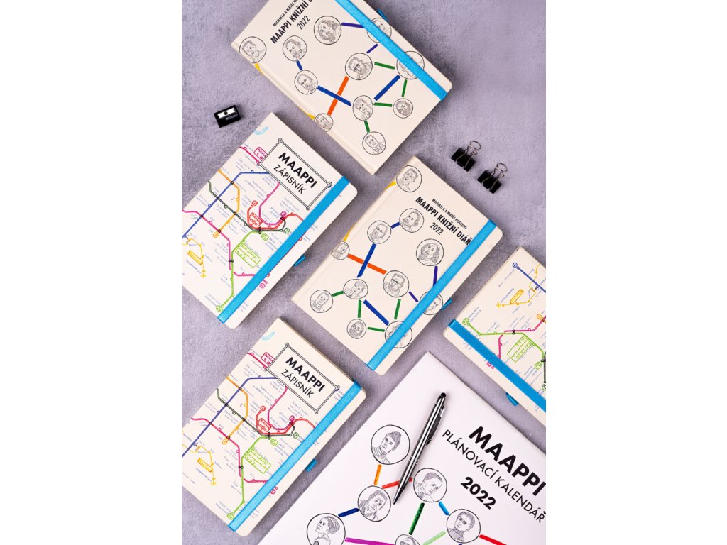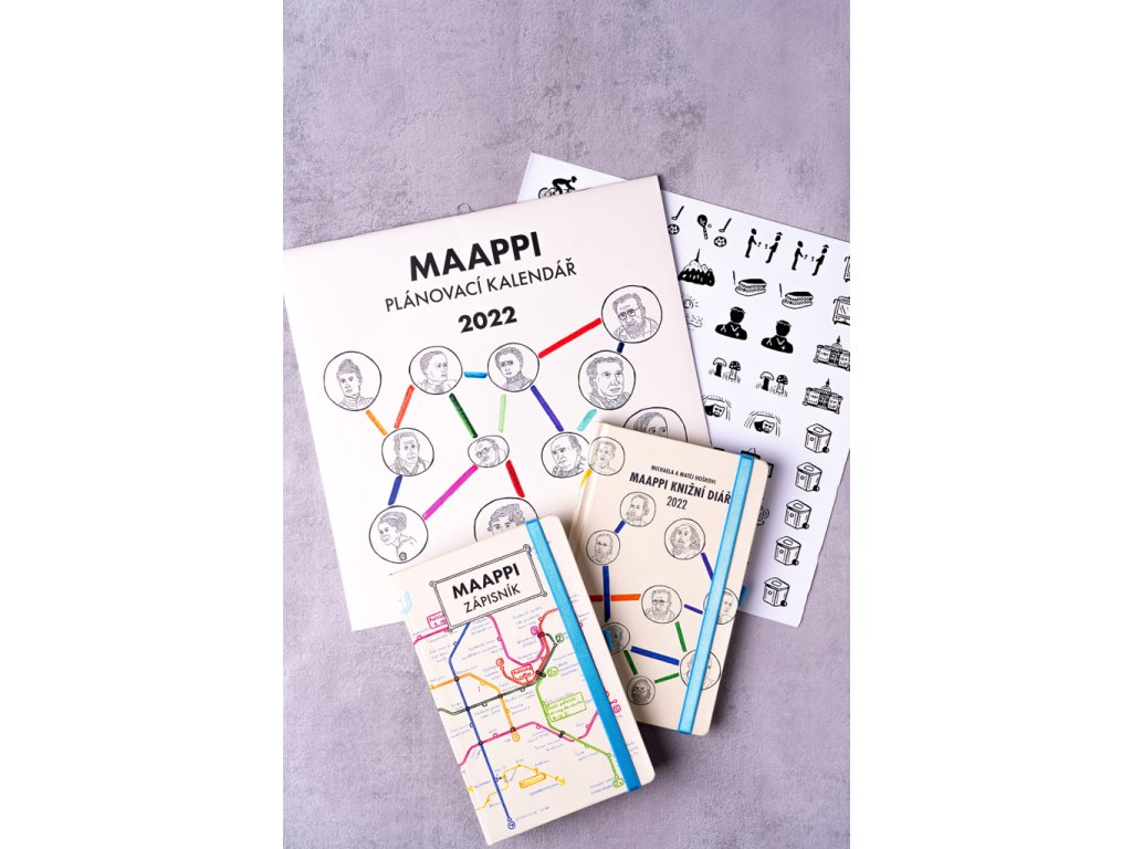 Maappi je dobročinný projekt, jehož hlavní tváří je sedmnáctiletý Matěj Hošek, který se od dětství potýká s těžkou formou Aspergerova syndromu. Rodiče si s ním dlouho nevěděli rady, až mu jednou do ruky dali mapu pražské MHD. Od té doby kreslí Matěj své unikátní plány podzemní dopravy. Nejlepší díla mladého designéra najdete na stránkách zápisníku, jehož koupí přispějete na podporu projektů zlepšujících život lidí s handicapem.Doplňkové parametry