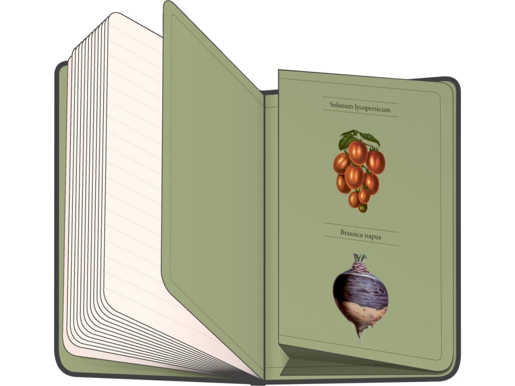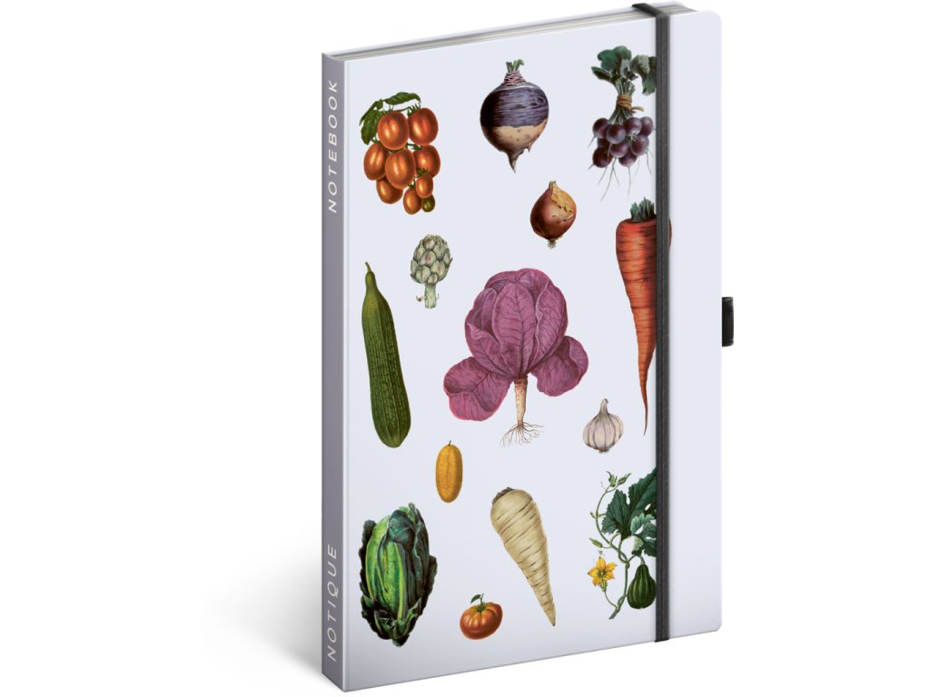 Notes v pevných deskách z kolekce Kateřiny Winterové s ilustracemi různorodé zeleniny, s uzavíráním na gumičku, kapsou na drobnosti a poutkem na tužku. Vevnitř najdete 172 linkovaných stran na žlutém papíře pro zapsání všech vašich nápadů.Doplňkové parametry