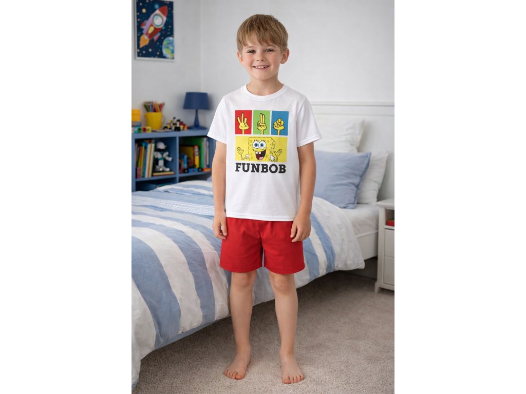 Chlapecké pyžamo SPONGEBOB krátké bíločervené