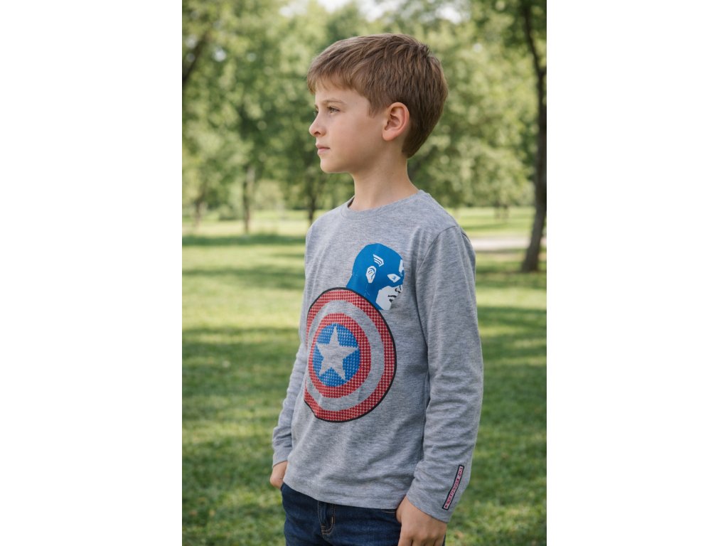 Chlapecké tričko AVENGERS Kapitán Amerika dlouhý rukáv šedé