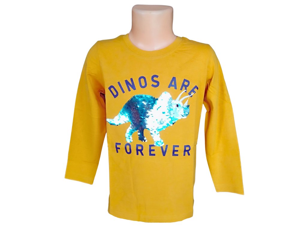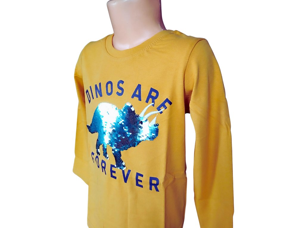 Chlapecké tričko GLO-STORY dinosaurus měnící flitry dlouhý rukáv hořčicové