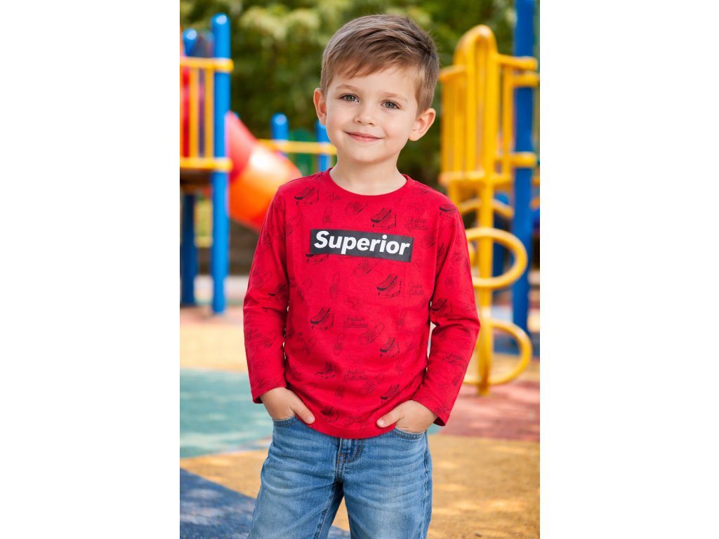 Parádní bavlněné tričko pro kluky. Tričko s dlouhým rukávem nesmí v šatníku našich kluků chybět. Tričko s nápisem Superoir je plné tenisek, ale hlavně je vyrobeno z vysoce kvalitní bavlny a je tedy velmi příjemné pro citlivou dětskou pokožku.