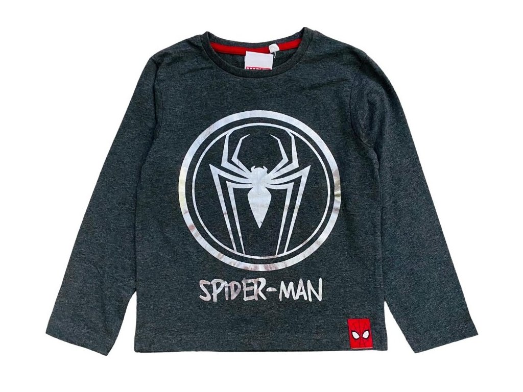 Chlapecké tričko SPIDERMAN metalický pavouk v kruhu dlouhý rukáv šedé