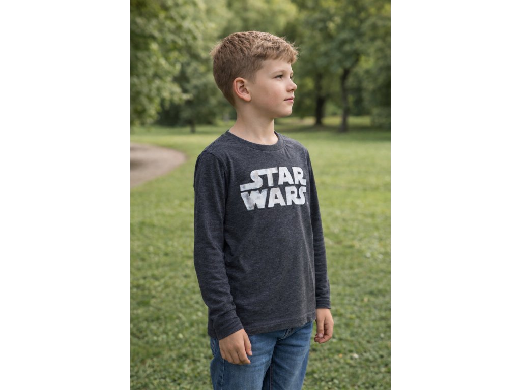 Chlapecké tričko STAR WARS 3D nápis metalický dlouhý rukáv šedé