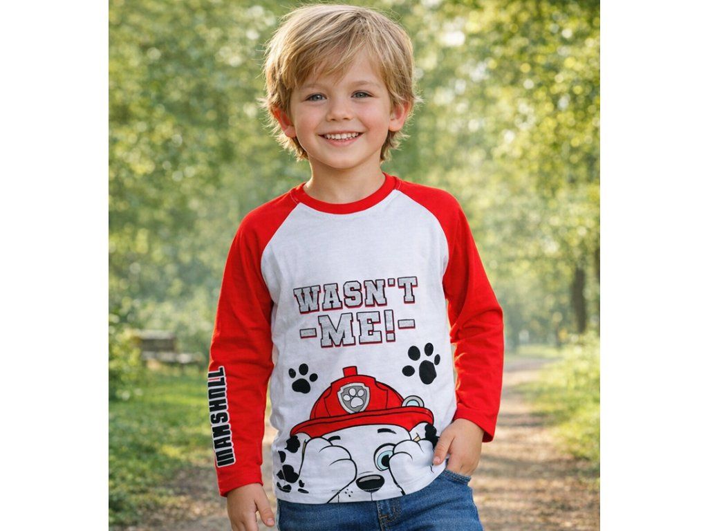 Chlapecké tričko TLAPKOVÁ PATROLA MARSHALL wasn´t me dlouhý rukáv bíločervené