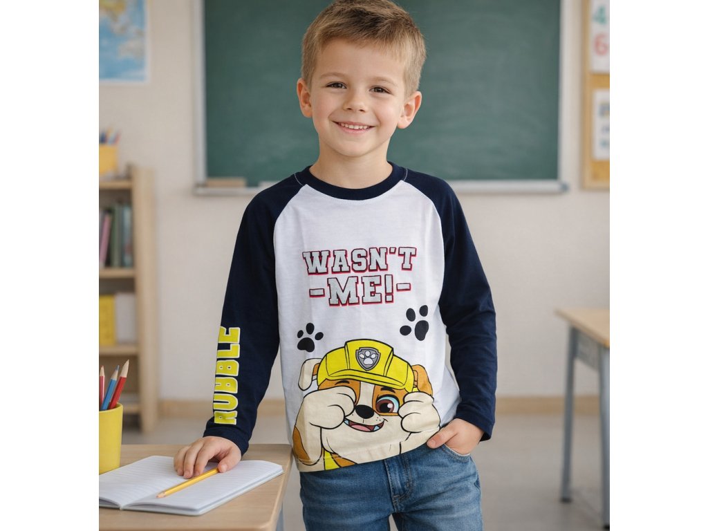 Chlapecké tričko TLAPKOVÁ PATROLA RUBBLE wasn´t me dlouhý rukáv bílomodré