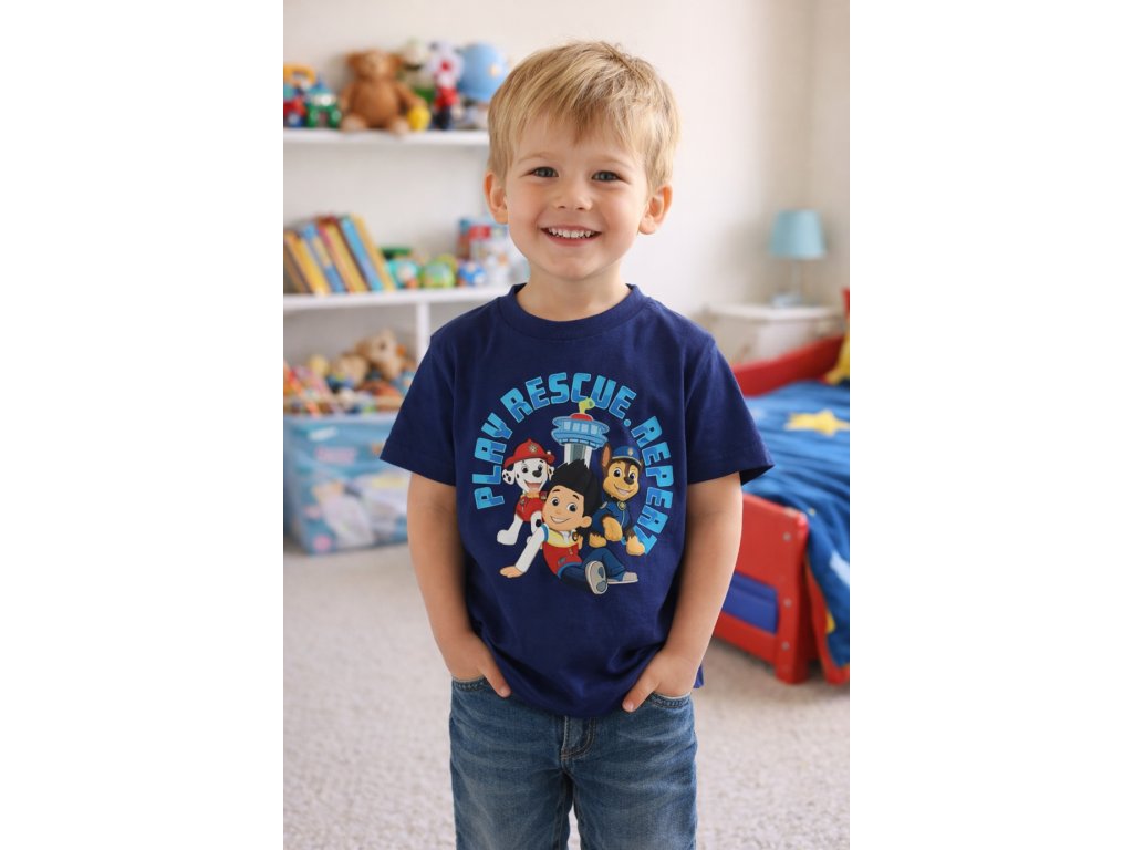 Chlapecké tričko TLAPKOVÁ PATROLA play rescue repeat krátký rukáv modré