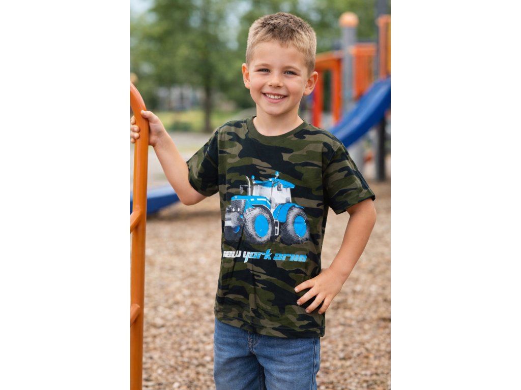 Chlapecké tričko TRAKTOR modrý krátký rukáv maskáč