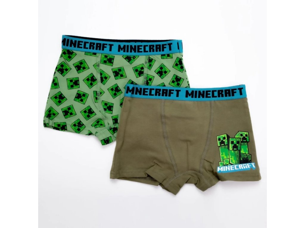 Pohodlné chlapecké boxerky Minecraft jsou skvělou volbou pro každodenní nošení. V balení najdete 2 kusy boxerek s různými motivy Creeper, které zaujmou hravou pixelovou grafikou. Elastický pas s nápisem Minecraft dodává moderní vzhled a zároveň dobře drží při pohybu.