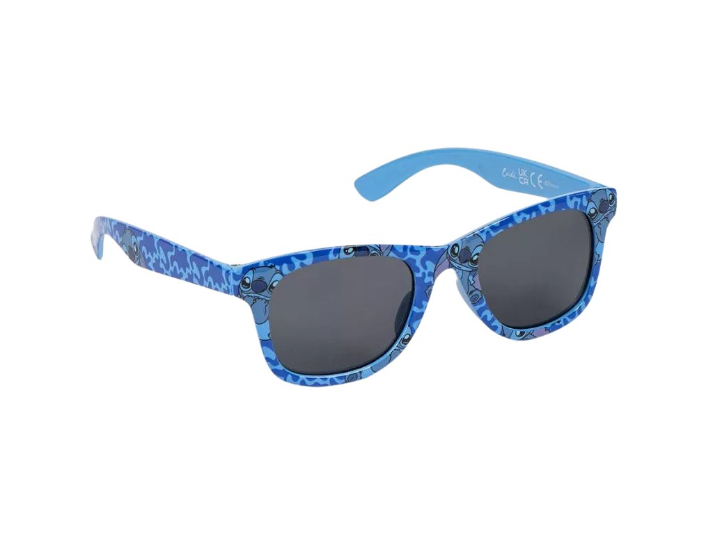 Dětské sluneční brýle Disney Lilo and Stitch v modrém provedení zaujmou veselým designem s motivy oblíbené postavičky Stitch. Rámeček je zdoben hravým potiskem v různých odstínech modré, který dodává brýlím moderní a atraktivní vzhled. Tmavá skla zajišťují pohodlné vidění i během slunečných dnů a pomáhají chránit dětské oči.