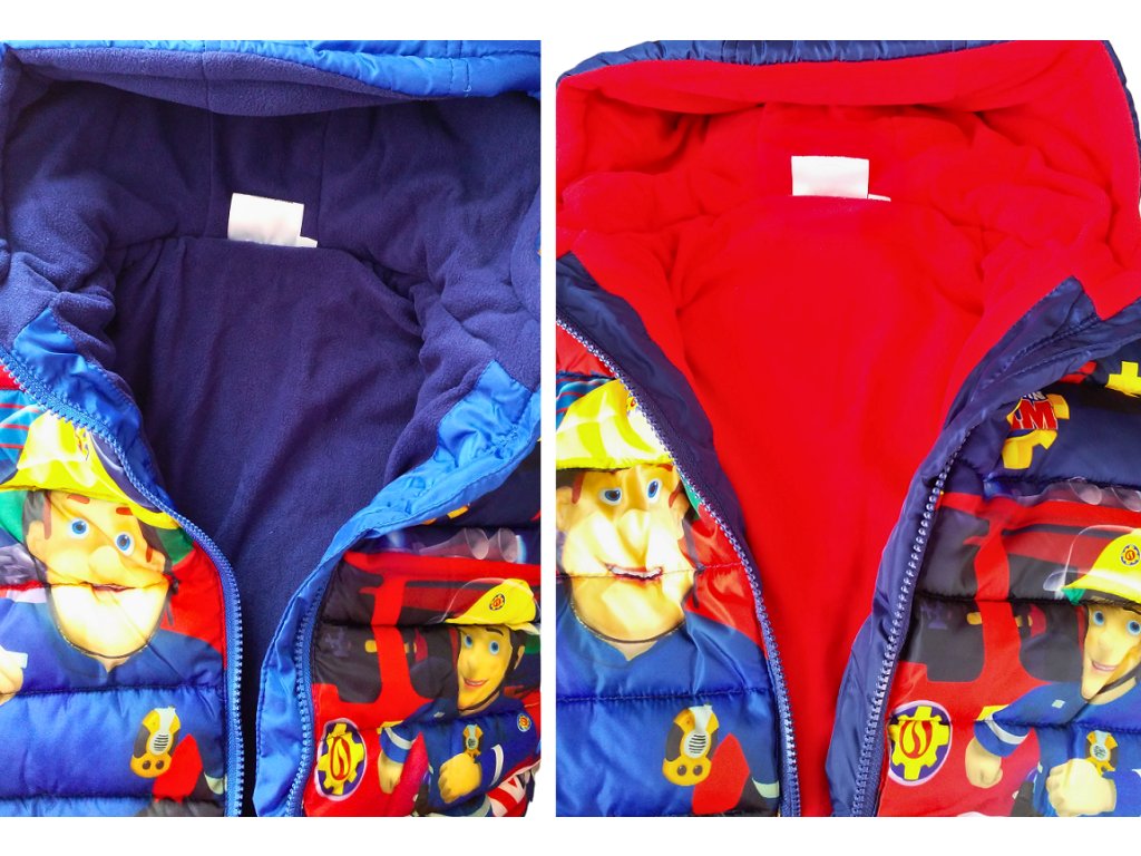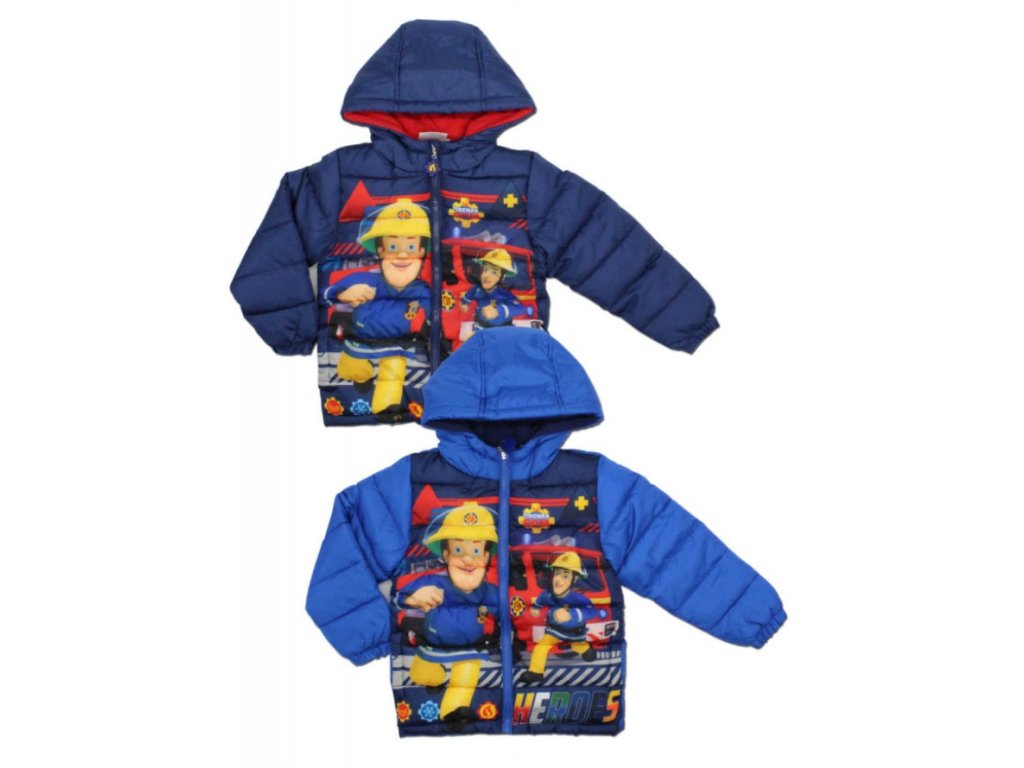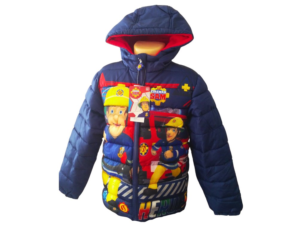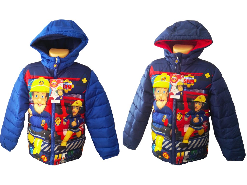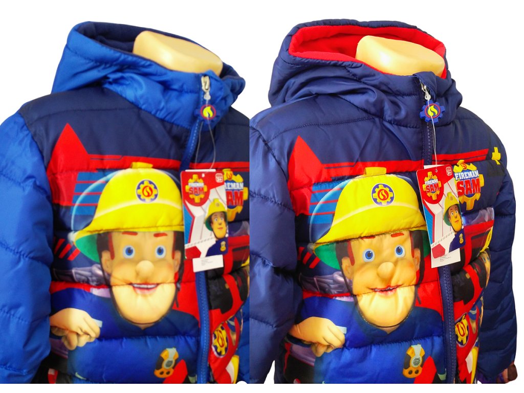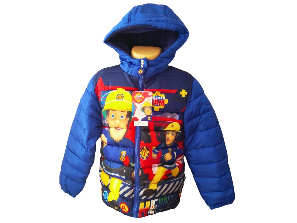 Zimní bunda Požárník Sam zahřeje i v tuhých mrazech. Prošívaná vyteplená bunda se zapínáním na zip je vybavena kapucou i bočními kapsami. Bunda má celolátkové motivy, syté barvy, tělo i kapuca jsou podšity hřejivým polar fleecem. U krku je buda šita do stojáčku, který zajistí, že nebude zafukovat na krk.