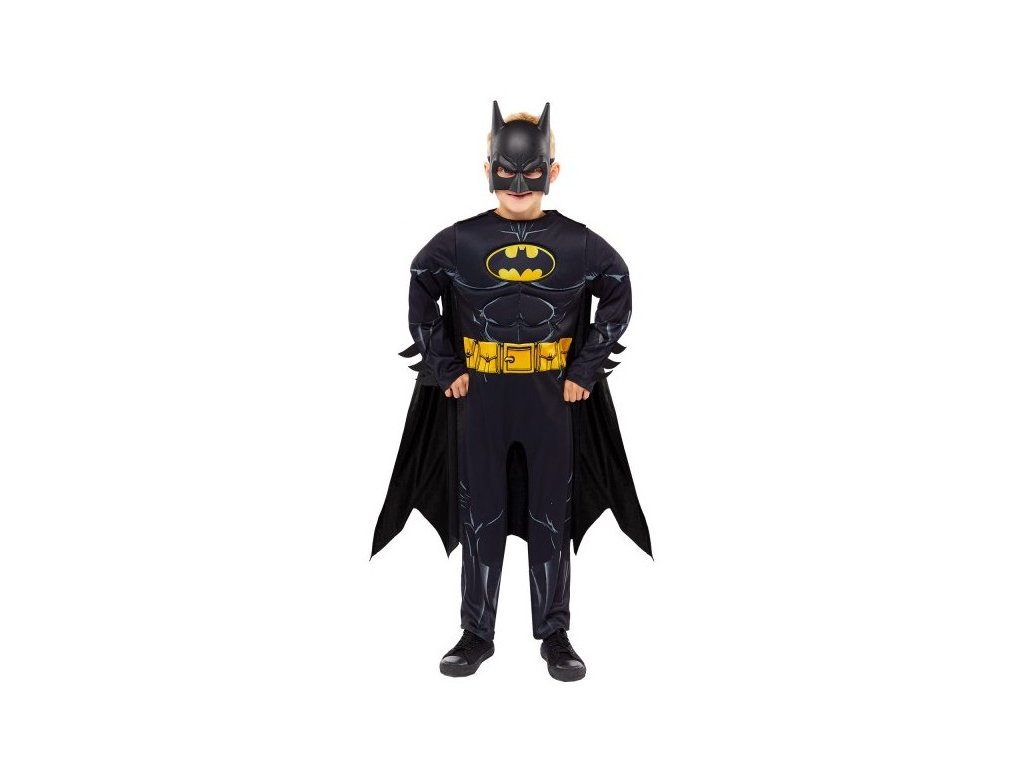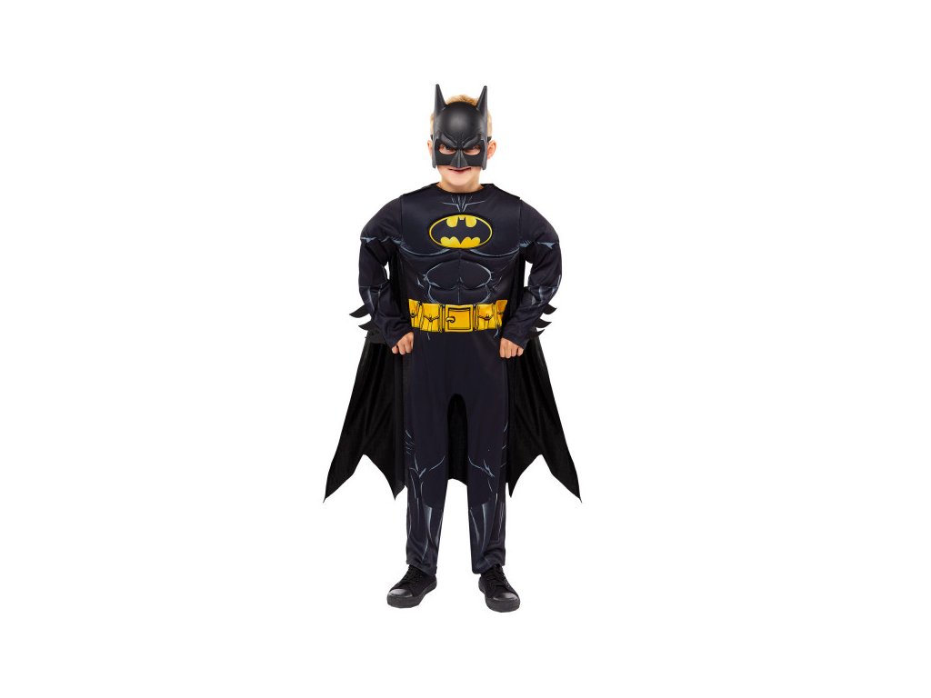 Kostým vyniká realistickým designem s černým overalem, výrazným znakem netopýra na hrudi a potiskem svalů, který dodává hrdinský vzhled. Součástí je také plášť, jenž podtrhuje akční styl, a maska, díky které se dítě snadno promění v legendárního Batmana. Materiál je lehký, prodyšný a příjemný na nošení, což zaručuje pohodlí i při celodenním používání.