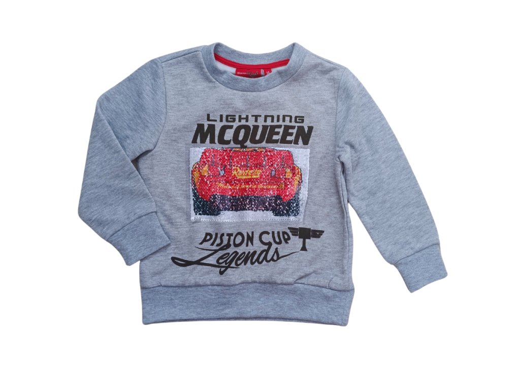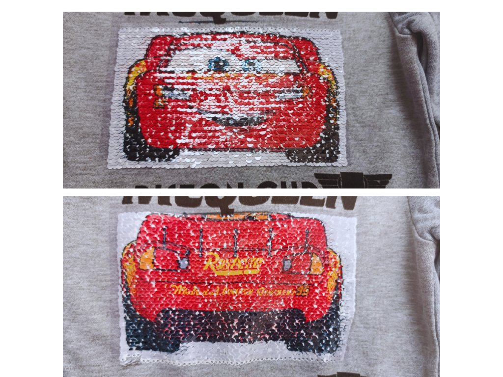 Skvělá mikina s měnícími flitry Cars. Superzávoďák McQueen nemá v rychlosti konkurenta a tato hřejivá mikina možná přenese na kluky něco z jeho dovedností. Mikina má uvnitř česaný chloupek, ukončení rukávů a v pase je do pružných manžet. Celkový střih je velmi pohodlný a dostatečně široký pro všechny běžné denní aktivity dětí.