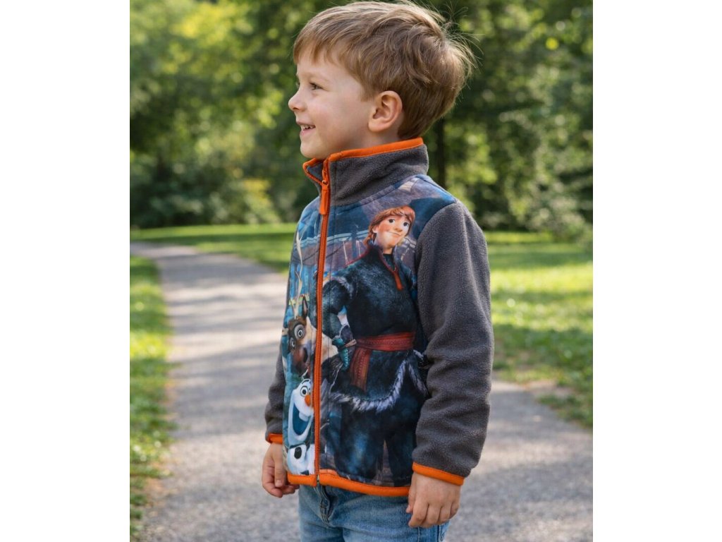Krásně hřejivá mikina s Kristoffem, Svenem a Olafem udělá radost každému nadšenci pohádky Frozen. Mikina má zapínání na zip, boční kapsy a suprový límeček ke krku, tak nezafukuje.