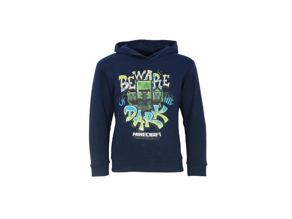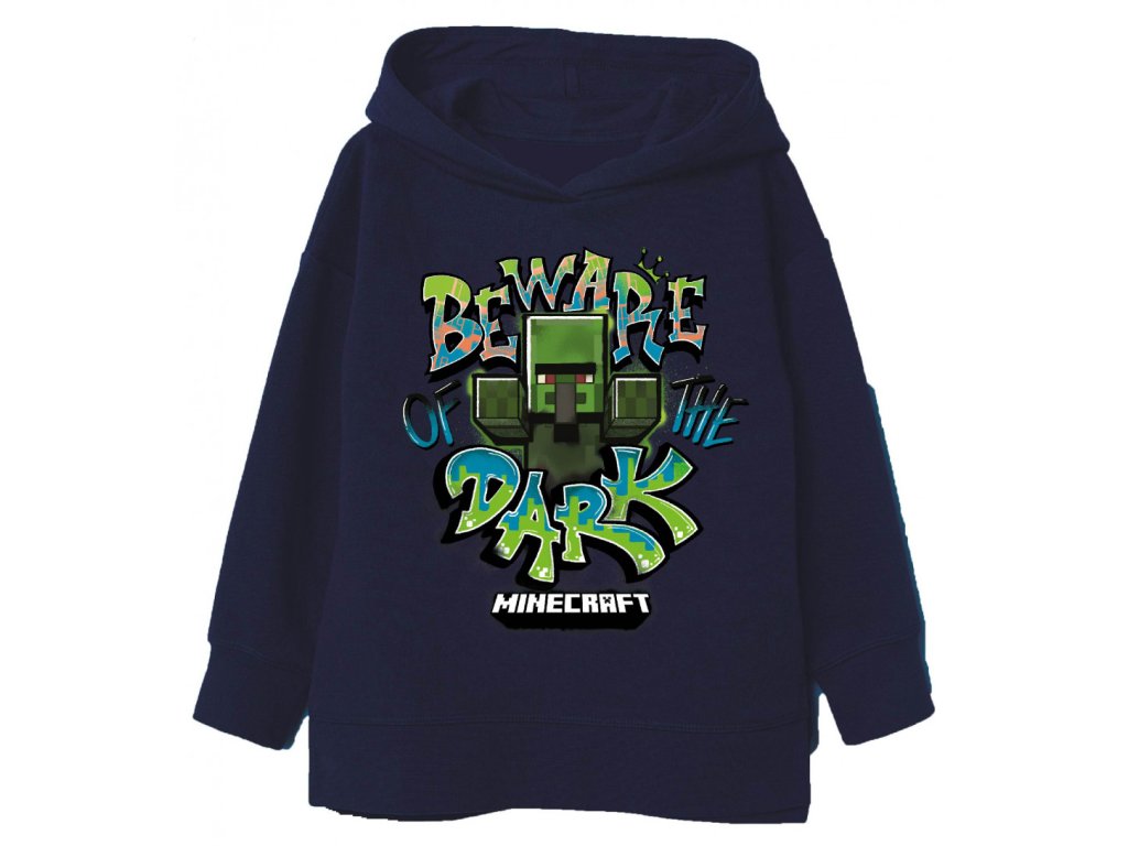 Když se setmí, Creeper ožívá! Dětská Minecraft mikina v tmavě modré barvě s výrazným potiskem „Beware Dark“ přináší do outfitu herní atmosféru. Kapuce pomůže zahřát a pohodlný...