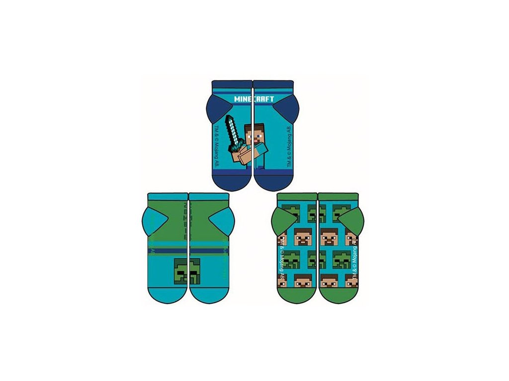 Chlapecké kotníkové ponožky MINECRAFT 3pack modro-zelené 31/34
