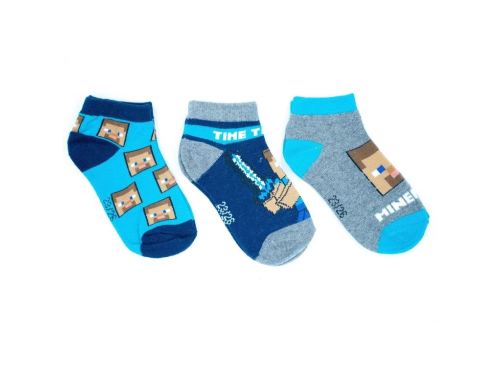 Chlapecké kotníkové ponožky MINECRAFT 3pack šedo-modré 35/38