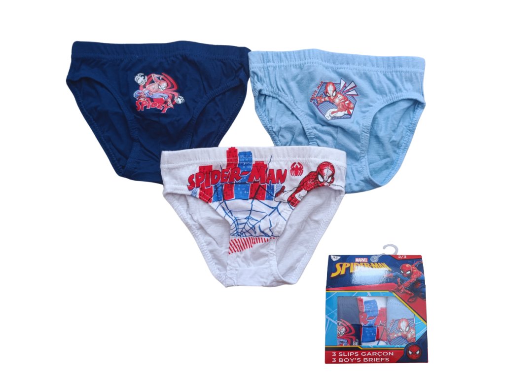 Slipy pro kluky s pavoučím mužem - Spidermanem. Bavlněné slipy jsou baleny po 3 kusech, gumičky krásně pružné neškrtící.