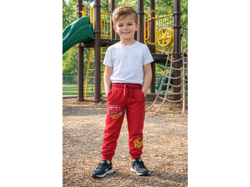 Dětské tepláky Cars. Máte doma malé závodníky? Tak myslete na to, že než vyrazí na kolo či tříkolku, musí mít i správný outfit. Super dětské tepláky Cars s idolem kluků Blesk McQueenem jim budou báječně sedět. Tepláky jsou velmi příjemné, celoroční bez vyteplení, v pase mají velmi pohodlnou a pružnou vyšší gumu s funkční šňůrkou a jsou vybaveny bočními kapsami. Nohavičky jsou ukončeny do praktických manžet. Kvalitní materiál zajistí svou pružností velký rozsah pohybu a tepláky jsou tedy vhodné do školy, na doma, na ven i na sport.