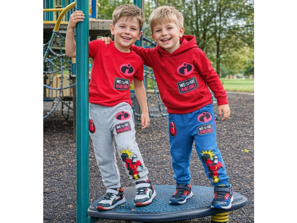 Super tepláky s motivem Incredibles pro kluky. Tepláky jsou velmi pohodlné, nohavice mají ukončení do praktických manžet, v pase je pohodlná vyšší guma a nechybí ani boční kapsy. Kvalitní chlapecké tepláky mají uvnitř lehounký česaný chloupek, takže budou hřejivé.