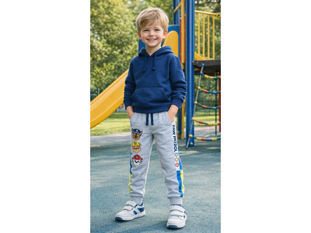 Krásné a příjemné tepláky pro kluky, kteří fandí Paw Patrol. Tepláky mají boční kapsy, nohavice jsou ukončeny praktickými a pružnými manžetami. V pase je pružná guma doplněna funkční šňůrkou, takže lze obvod stáhnout dle potřeby. Tepláky jsou velmi kvalitní a pohodlné, na bocích je všit látkový lampas.