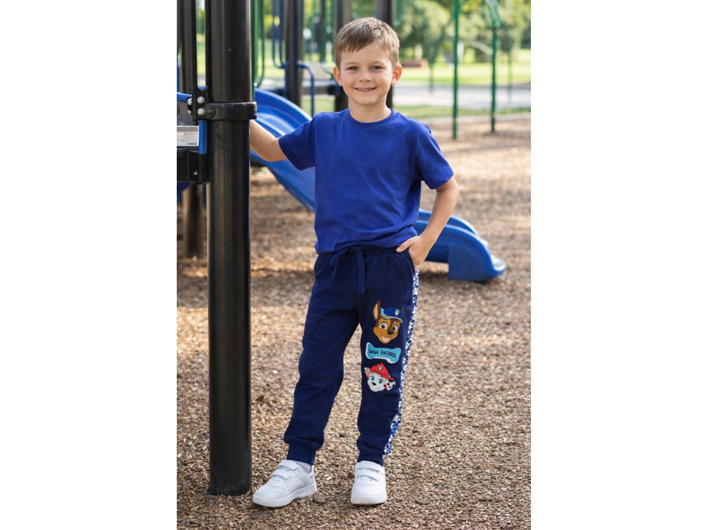 Krásné a příjemné tepláky Paw Patrol. Tepláky jsou velmi kvalitní, pohodlné a pružné, mají boční kapsy, nohavičky ukončeny praktickými a pružnými manžetami. V pase mají extra pohodlnou širší gumu, doplněnou velmi praktickou funkční šňůrkou. Pas lze tedy stáhnou dle potřeby. Tepláky zdobí postavičky Chaseho a Marshalla a krásně výrazné jsou i látkové lampasy se spoustou tlapiček.