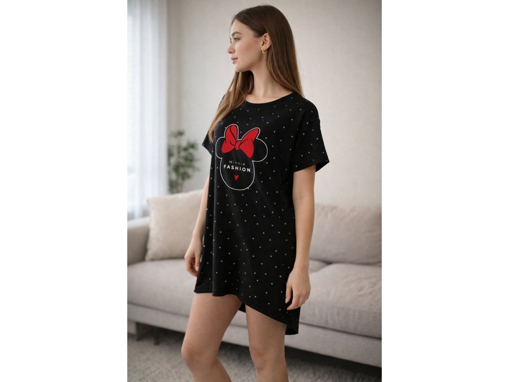 Dámské tričko Minnie je výborné volba, kterou vaše děti ocení. Pojďte do pohádky spolu s dětmi a toto tričko vám otevře dveře. Tričko pro ženy je velmi pohodlné, je vhodné pro denní nošení v kombinaci s legínami a také je pro svou volnost vhodné i pro pohodlný spánek jako noční košilka.