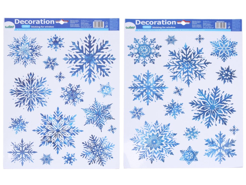 Dekorace okenní o velikosti 41x29 cm Vločky VÁNOCE. 2 druhy - v ceně 1 kus bez možnosti výběru varianty