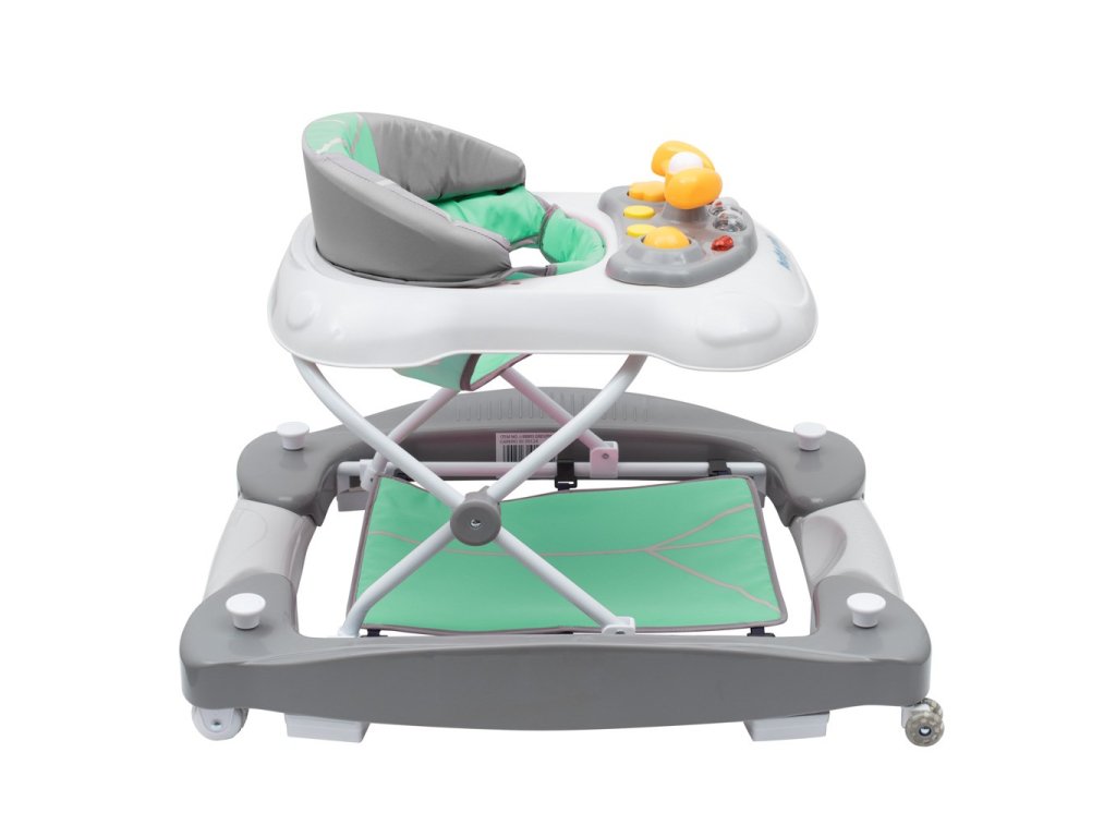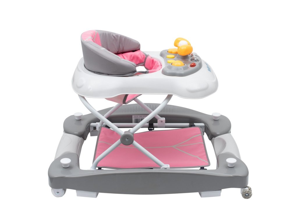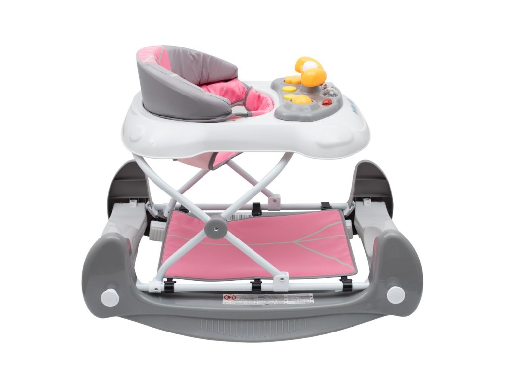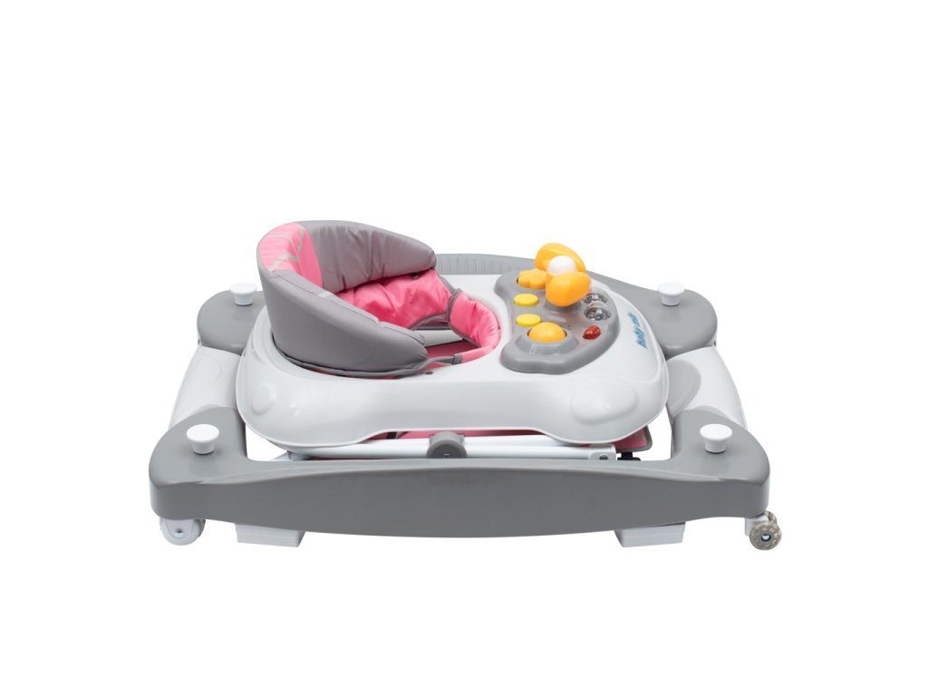 Dětské chodítko s houpačkou Baby Mix ve veselých barvách se čtyřmi silikonovými kolečky. Chodítko je nastavitelné do několika poloh a má velice pohodlný potah, který lze vyprat a je v zadní části vyztužený. Hrací pultík je vybaven volantem, který píská a lze ním otáčet, květinka, hrkálka, dvě tlačítka, které hrají melodie a dvě světýlka.