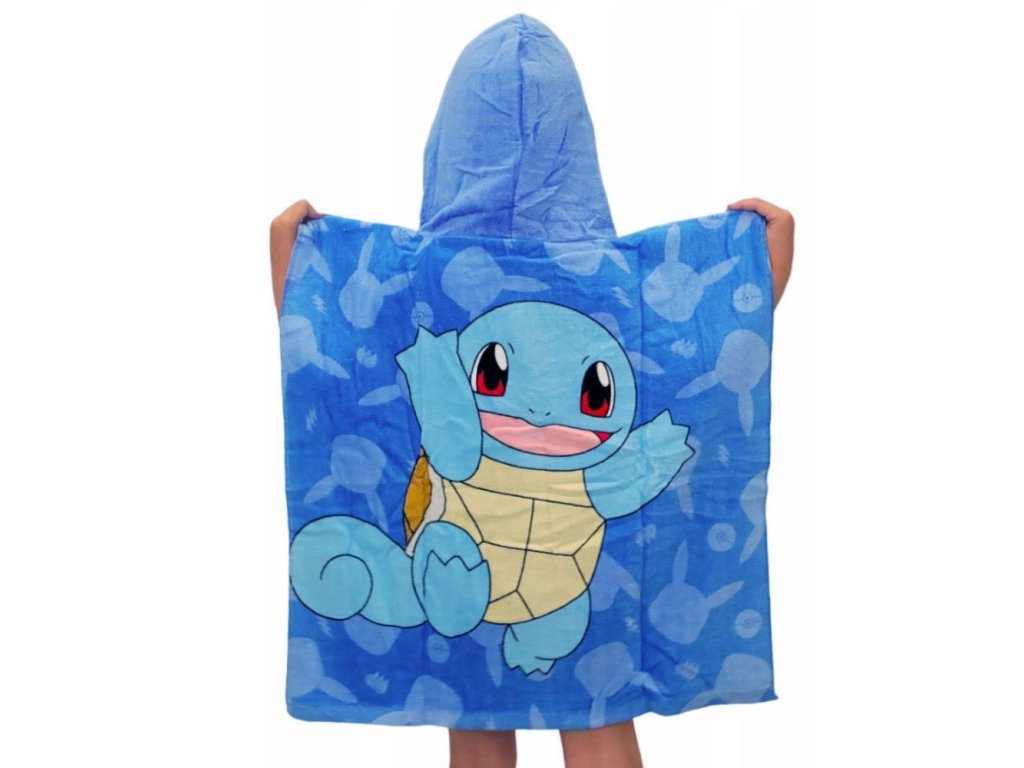 Dětské plážové pončo Pokémon přináší oblíbené postavičky z Pokémon světa přímo k vodě. Na přední straně ponča je výrazný obrázek Pikachu, zatímco zadní část zdobí Squirtle. Modré pozadí s jemnými motivy dodává ponču veselý a hravý vzhled.