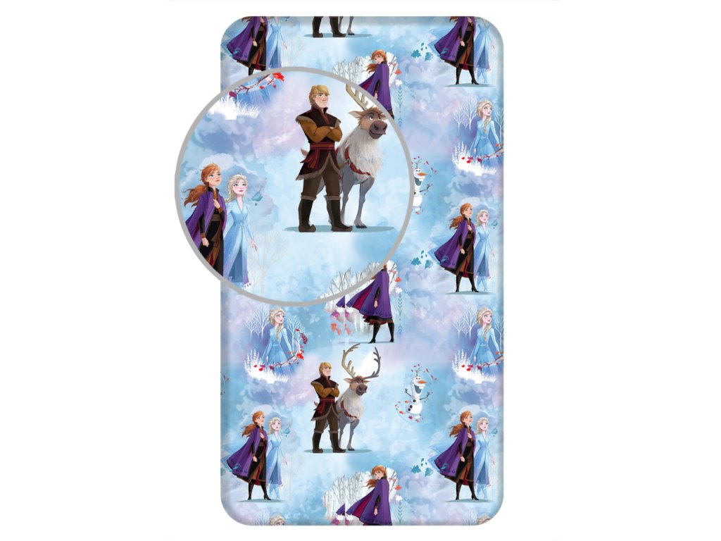 Pojď spinkat s oblíbenými princeznami Annou a Elsou z Arendellu ❄️. Dětské prostěradlo s motivem pohádky Ledové království (Frozen) potěší všechny malé princezny. Na jemném podkladu najdete nejen Annu a Elsu, ale také jejich kamarády Kristoffa, Svena a sněhuláka Olafa, kteří dodají pokojíčku kouzelnou zimní atmosféru ✨.