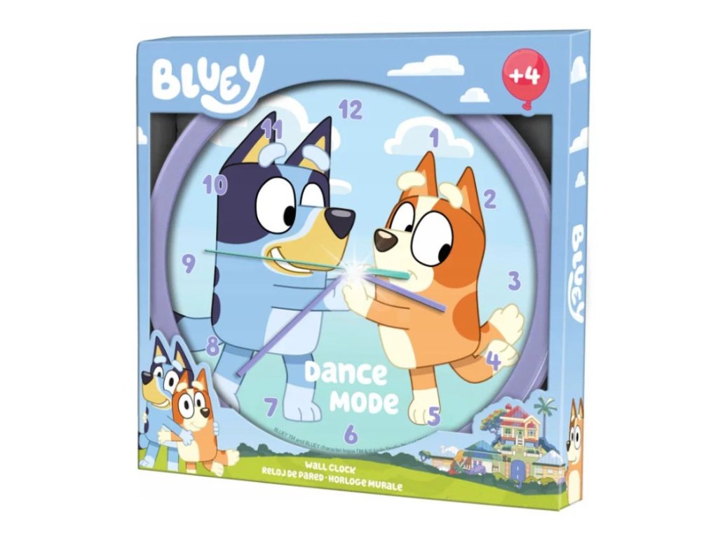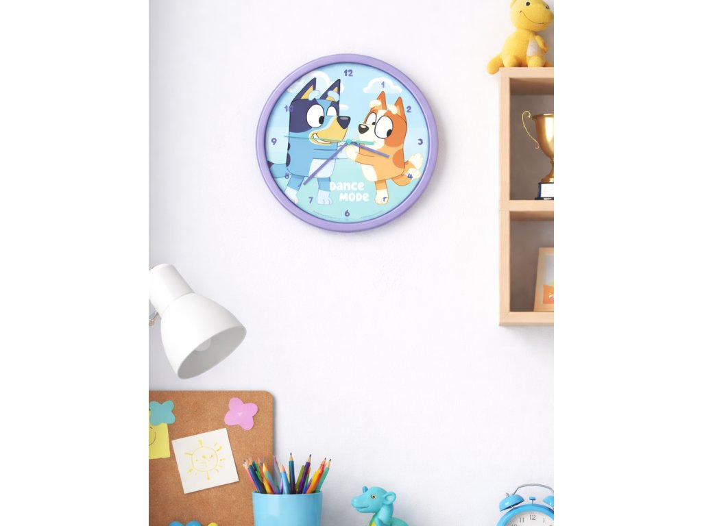 Krásné nástěnné hodiny Bluey do dětských pokojíků.