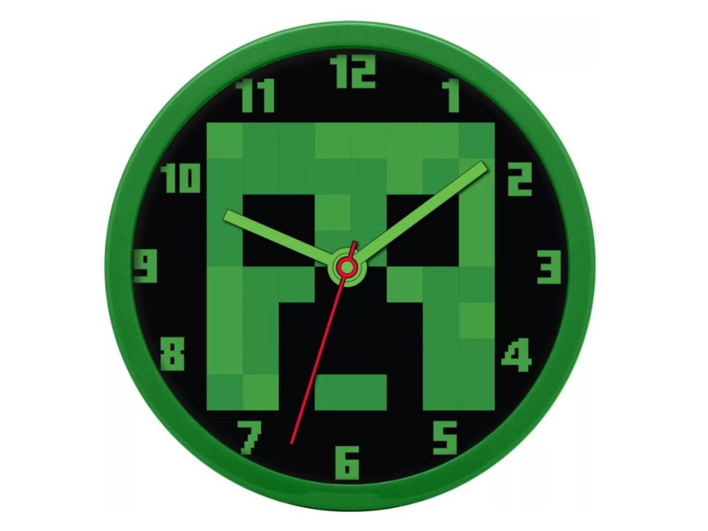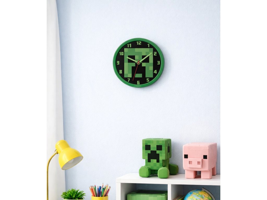 Hodiny Minecraft - pozor! Do doupěte superhráčů Minecraft patří jedině stylové doplňky. Nákupem nástěnných hodin Minecraft pořídíte nejen krásnou dekoraci do dětských pokojíčků, ale je to velmi praktický designový doplněk. Kulaté hodiny s Creeperem mají pro lepší přehlednost velké číslice a v zadní části otvor pro zavěšení na zeď.