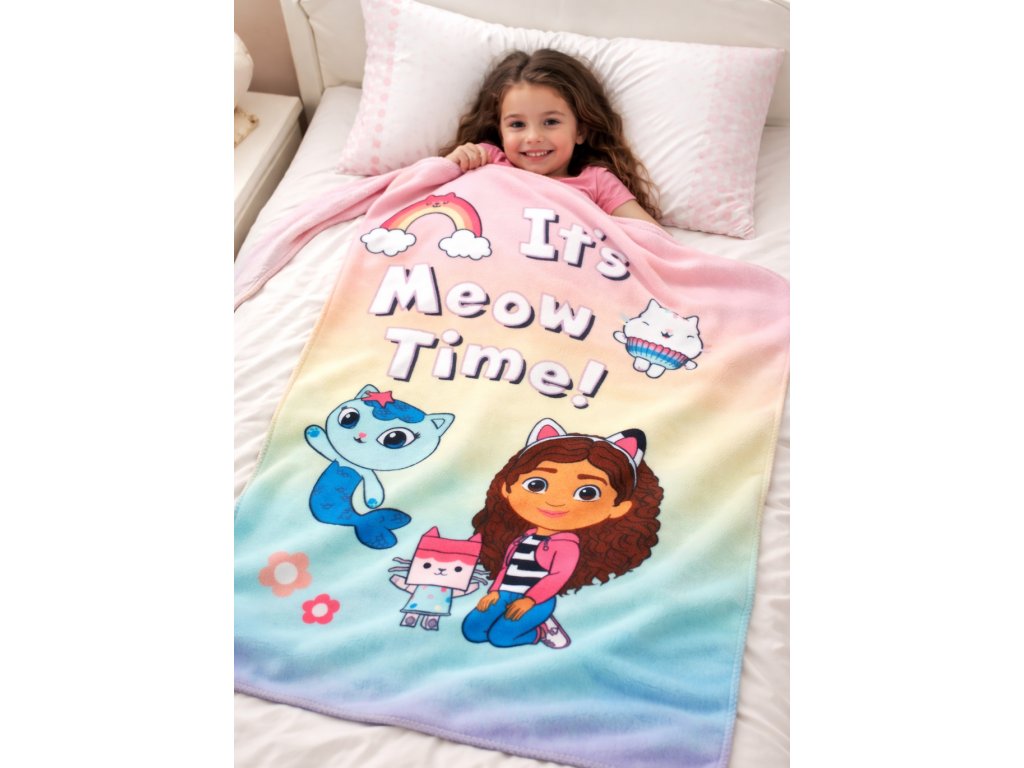 Dětská deka GÁBININ KOUZELNÝ DOMEK Je čas mňoukat 100 x 150 polar fleece duhová