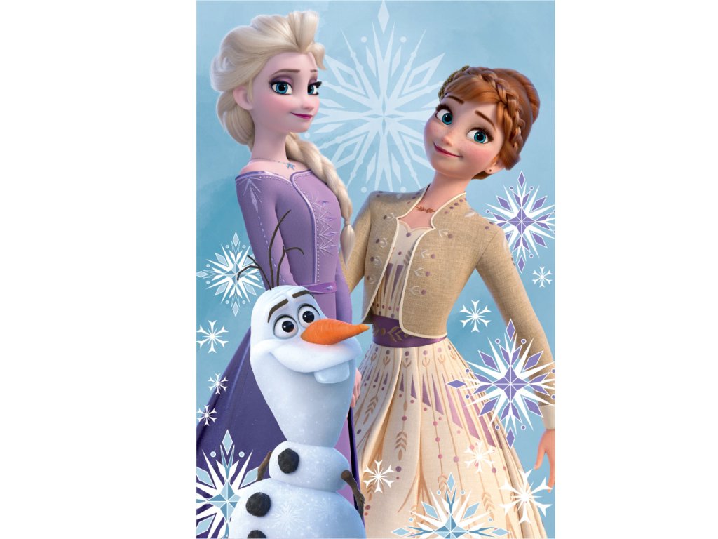 Dopřejte své malé princezně kouzlo zimního království s pohádkovou dekou s motivem oblíbených hrdinek z filmu Ledové království. Na dece najdete princezny Annu a Elsu spolu se sněhuláčkem Olafem, kteří vykouzlí úsměv na tváři každé holčičky.