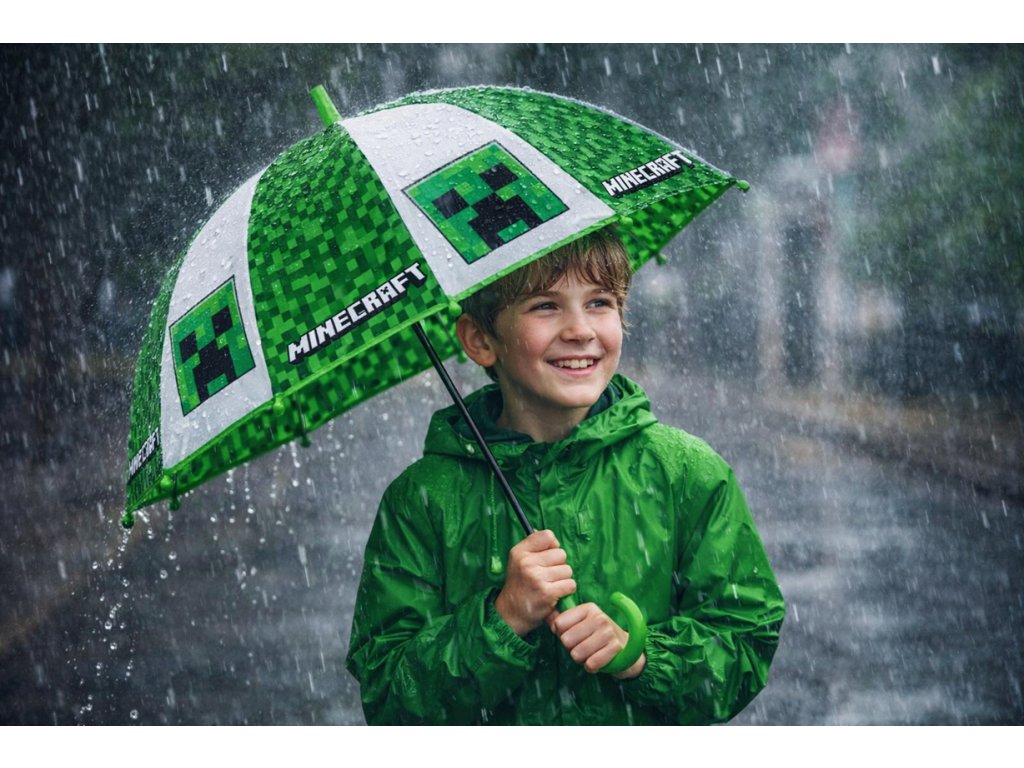I hráči někdy musí opustit svůj PC a venku není vždy krásné počasí. Stylový deštník Minecraft zajistí sucho a pohodlí. Deštník pro holky i kluky, pro malé i velké, je průhledný - transparentní, s manuálním ovládáním a s velmi pohodlnou plastovou rukojetí, takže se dětem dobře nosí.