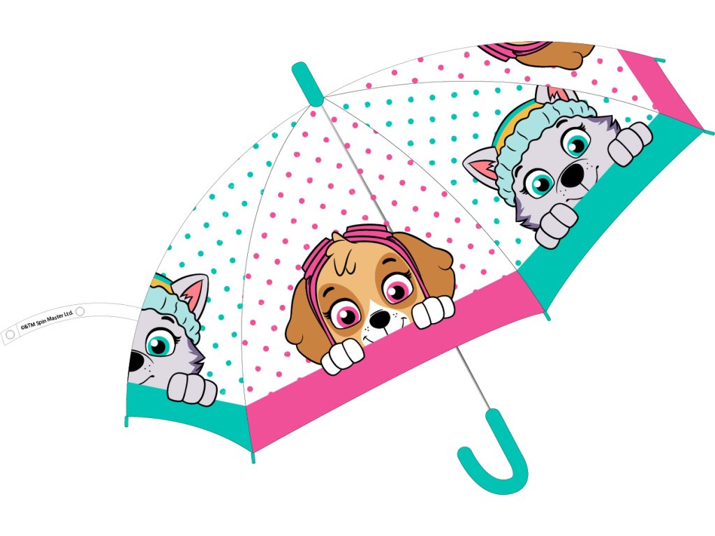 Dívčí deštník TLAPKOVÁ PATROLA SKYE A EVEREST automatický transparentní