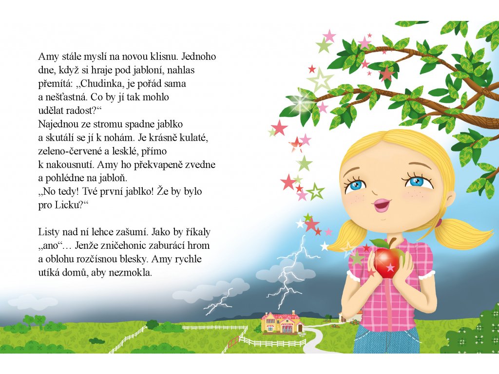Amy žije na ranči ve Spojených státech amerických. Má však jeden problém: bojí se nasednout na koně. Všichni se ji snaží přesvědčit, že to nic není, ale marně. Vypráví o tom své jablůňce, která ještě nikdy neurodila žádné jablíčko. Jednoho dne dorazí na ranč nová klisna. Čeká hříbátko, ale nastanou komplikace. Amy za pomoci prvního plodu ze svého stromku klisnu i s hříbátkem zachrání. Na hřebečku Nebojsovi se pak naučí skvěle jezdit a jablůňka je od té doby obsypaná jablky.Doplňkové parametry