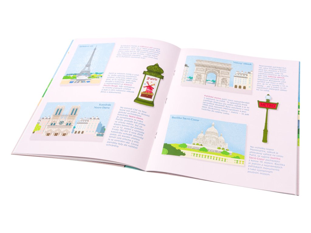 Objevuj s Emmou krásy Paříže! Doplň známá pařížská zákoutí o zamilované páry, květiny a mnoho dalších detailů – máš na to 250 samolepek! Oblíbená série minimiky přichází s další novinkou v podobě zábavné samolepkové knížky, v níž budou děti společně s panenkou Emmou a jejími kamarádkami Amelií a Audrey objevovat nejznámější kouty francouzské metropole Paříže zvané „město zamilovaných“. Pařížskou scenerii mohou doplnit spoustou krásných samolepek podle vlastní fantazie a v knížečce najdou také mnoho zajímavých informací o tamních památkách, známých místech, ale také třeba o delikatesách světově vyhlášené francouzské kuchyně.Doplňkové parametry