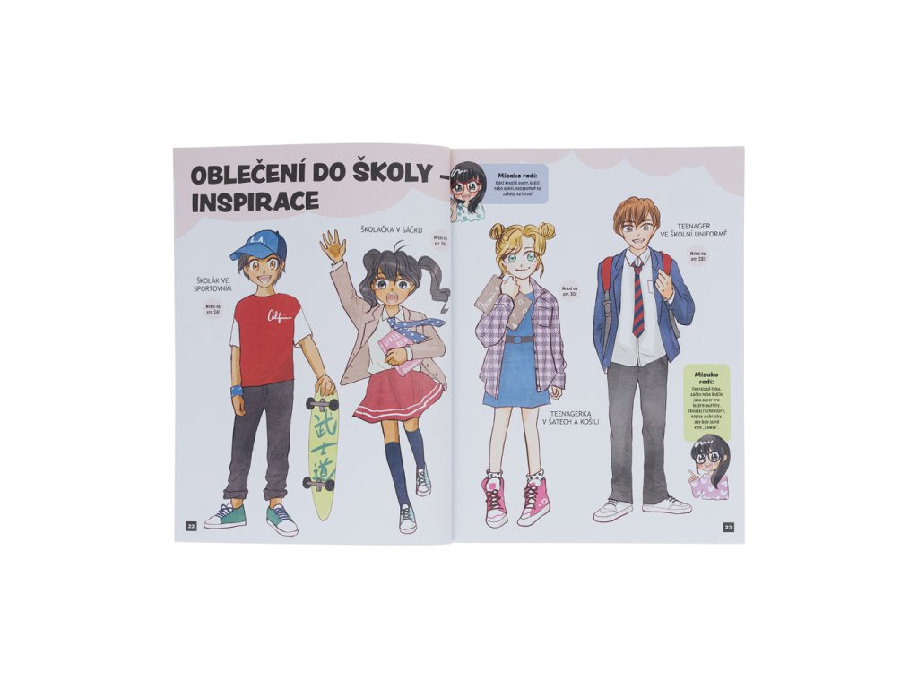 Tahle knížka se hodí každému, kdo miluje kawaii (což je japonský výraz pro něco roztomilého) obrázky a chce se naučit tvořit ve stylu manga a anime. Povede vás pěkně krok za krokem a vy se díky ní naučíte kreslit oblečení a doplňky pro manga postavičky, dozvíte se, jak tvořit různé styly oblékání, účesy, dynamické pózy, a mnoho dalších tipů. Otevře se vám celý nový kreativní svět! Srozumitelné praktické rady a návody udělají z vašeho učení zážitek. Uvidíte, že s každým zvládnutým obrázkem poroste vaše kreslířské umění i sebevědomí.Doplňkové parametry