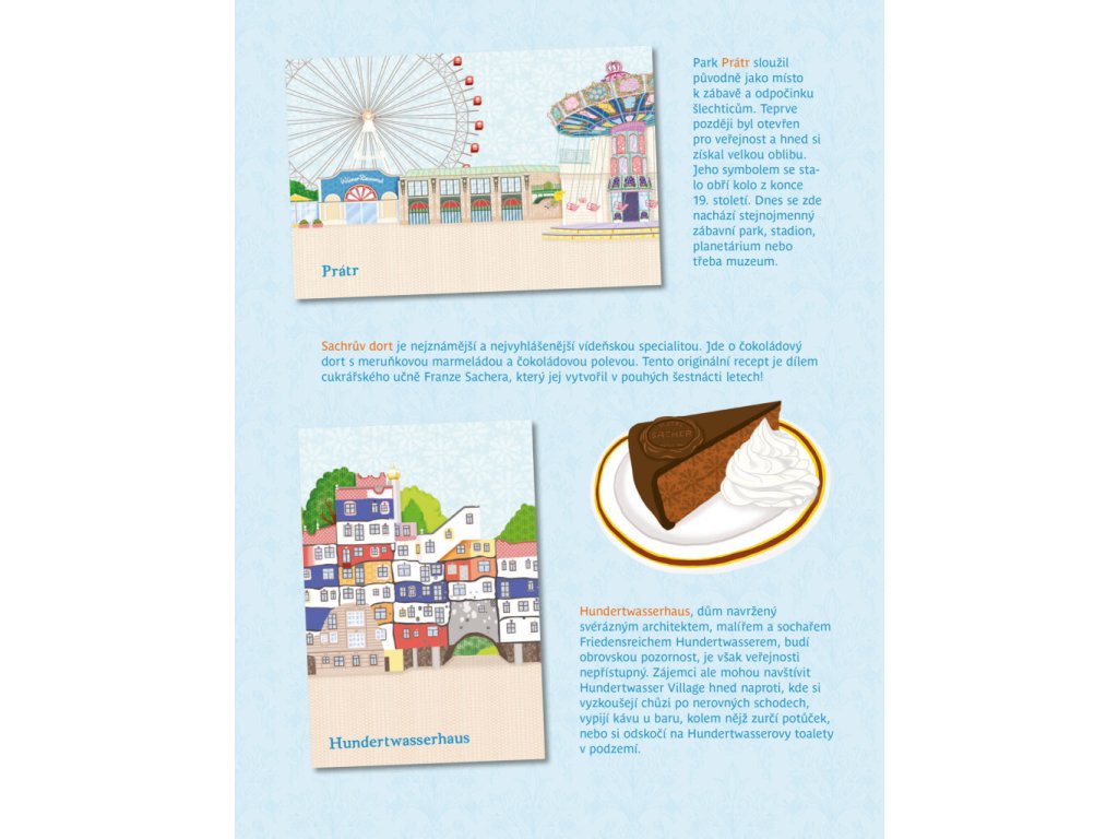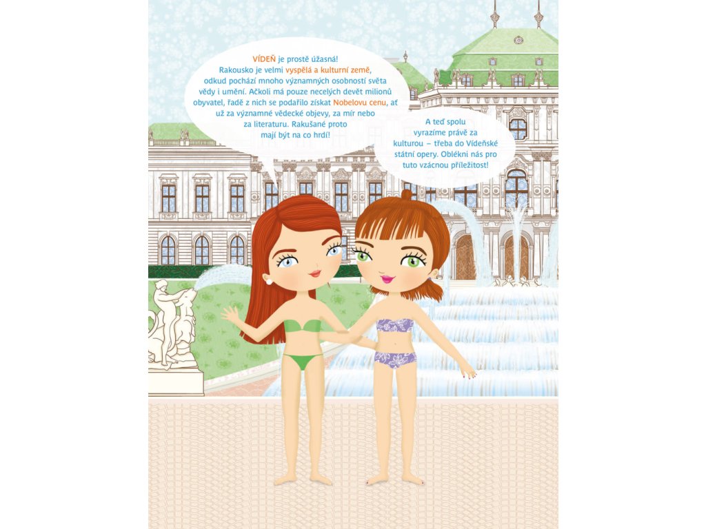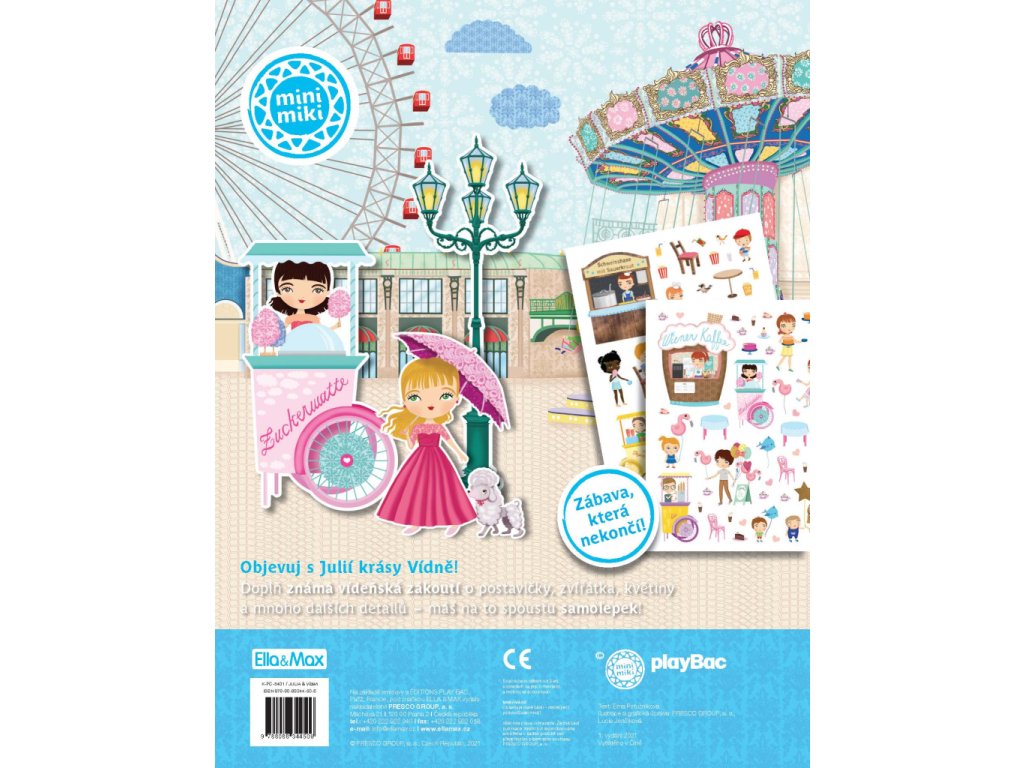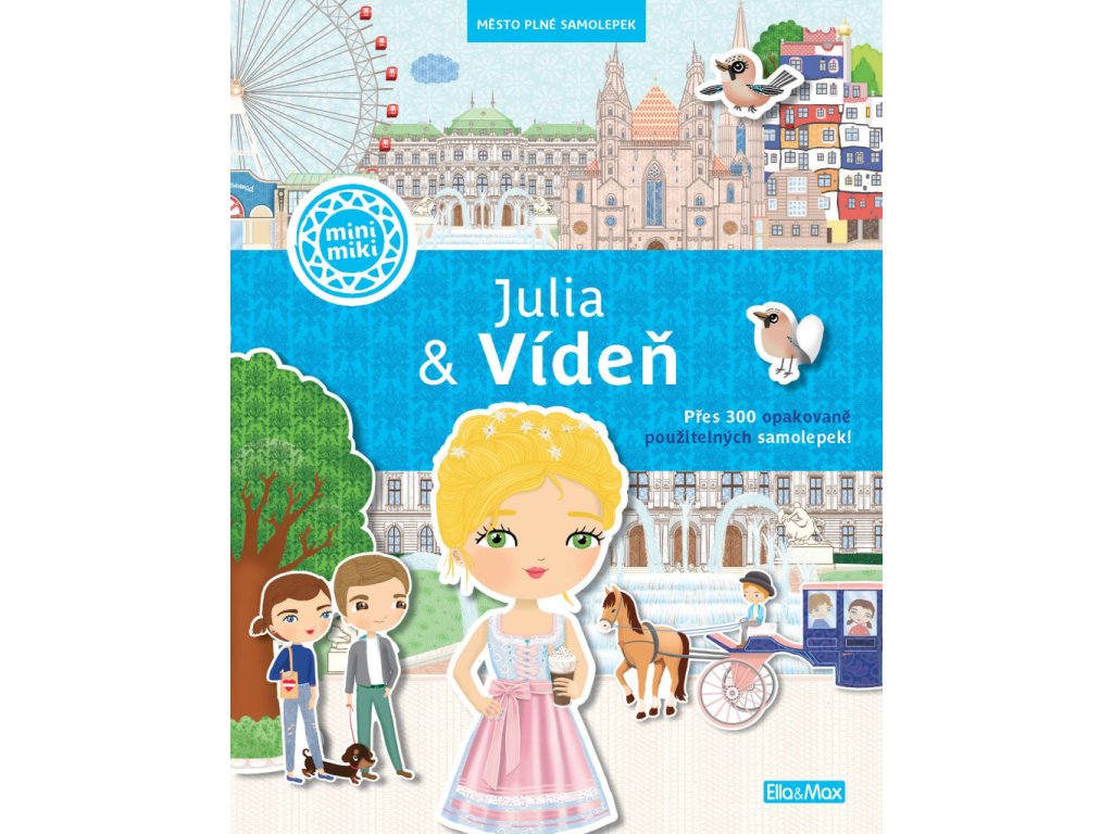 Oblíbená série minimiki přichází s další novinkou v podobě zábavné samolepkové knížky, v níž budou děti společně s panenkou Julií a jejími kamarádkami Stefanií a Natalií objevovat nejznámější kouty rakouského hlavního města Vídně, jedné z nejkrásnějších evropských metropolí. Známé vídeňské scenerie mohou doplňovat spoustou krásných samolepek podle vlastní fantazie a v knížce najdou také mnoho zajímavých informací o zdejších památkách, ale také třeba o obyvatelích této země.Doplňkové parametry