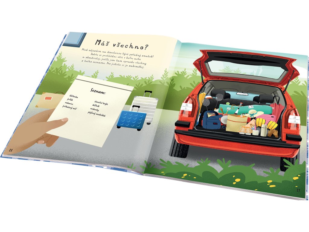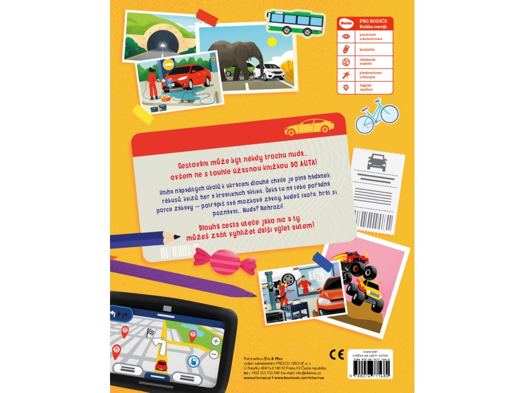 Cestování může být někdy trochu otrava… ovšem ne s touhle úžasnou knížkou DO AUTA, která je plná nápaditých úkolů k ukrácení dlouhých chvílí! Najdete v ní spoustu hádanek, zapeklitých rébusů, zábavných kvízů, her, kreativních aktivit i zajímavých informací z oblasti cestování autem. Čeká tu na vás pořádná porce zábavy – potrápíte své hlavičky, budete tvořit, hrát si, poznávat… Nuda? Nehrozí! Dlouhá cesta autem uteče jako nic a vy můžete začít vyhlížet další výlet! Práce s knihou navíc rozvíjí představivost, fantazii a kreativitu, ale také pozornost, koncentraci a logické myšlení.Doplňkové parametry
