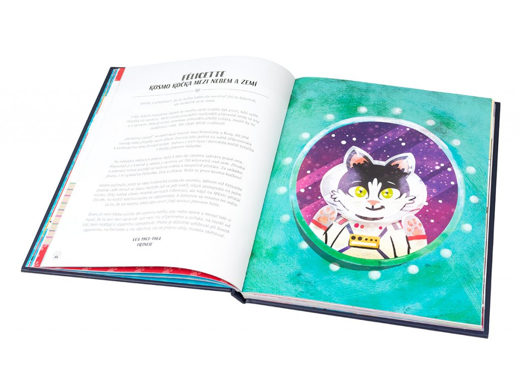 Dočtete se tu o dvou legendách druhé světové války, o nebojácných námořnících brázdících oceány, o pokořených světových rekordech, o kočkách, podle nichž vznikly knížky, a o spoustě dalších kočičích osobností – včetně jedné astronautky, která cestovala do vesmíru (a pak zase zpátky na zem, aby o své cestě mohla vyprávět). Zkrátka čeká vás pořádná dávka pozoruhodných kočičích zajímavostí a dobrodružství. Nevěříte? Čtěte!I KOČKY MAJÍ SVÉ HRDINY A HRDINKY!
