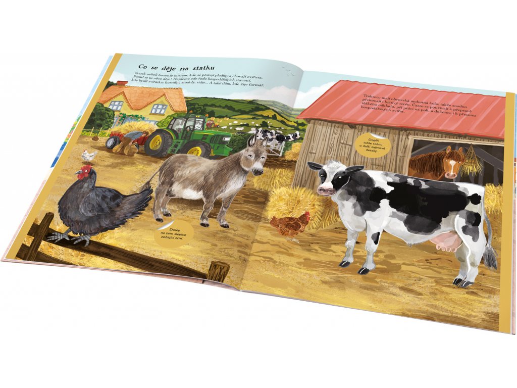 Vydejte se na dobrodružnou výpravu za zvířaty, kterým říkáme hospodářská – to jsou ta, která lidé už po tisíce let chovají pro nějaký užitek. Na farmě jich najdete mnoho a mnoho druhů! Liší se nejen podobou, ale také velikostí a nám lidem slouží různým způsobem. S knížkou plnou samolepek navštívíte stáj, kurník, výběh, pole, luka, sad i rybník – všude tam najdete hospodářská zvířátka, ale i celou řadu dalších tvorečků, kteří jim dělají společnost. V téhle knížce se o nich dozvíte mnoho zajímavostí, a navíc si užijete spoustu zábavy při dotváření 11 překrásných scenerií za pomoci roztomilých samolepek. Tak už na nic nečekejte a pusťte se do nalepování!Doplňkové parametry